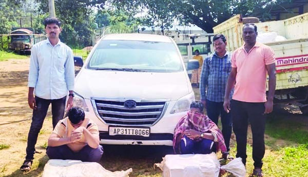 ప్రజాశక్తి-ముంచింగిపుట్టు:అక్రమంగా ఇన్నోవా కారులో గంజాయిని తరలిస్తుండగా స్థానిక ఎస్సై రవీంద్రకు ముందస్తు సమాచారం పోలీస్ సిబ్బంది, ఏపీఎస్పీ బెటాలియన్ బలగాలను అలెర్ట్ చేశారు. ఈ మేరకు మండల కేంద్రంలోని దారపల్లి జంక్షన్ వద్ద పోలీసులు మోహరించి చాకచక్యంగా పట్టుకున్నారు. స్థానిక ఎస్సై తెలిపిన వివరాలు ఇలా ఉన్నాయి. కించాయిపుట్ గ్రామం నుండి వస్తున్న ఇనోవ కారులో 50 కేజీల గంజాయి తరలిస్తున్నారు. పోలీసు బలగాన్ని చూసి, కారులో ఉన్న వారు తప్పించుకోవడానికి ప్రయత్నించారు. పోలీసులు వెంబడించి ఇద్దరిని పట్టుకున్నారు. ఒకరు పరారయ్యారు. ఇన్నోవా కారులో రెండు ప్లాస్టిక్ బస్తాలలో 50 కిలోల గంజాయి, రెండు ప్లాస్టిక్ సంచులు ఉన్నాయి. నిందితుడిని అదుపులోకి తీసుకుని 50 కిలోల గంజాయి, ఇన్నోవా కారు, ఒక మొబైల్ను ఎస్సై రవీంద్ర స్వాధీనం చేసుకున్నారు. 50 కేజీల గంజాయి విలువ సుమారు లక్ష ఉంటుందని అంచనా.కేసు నమోదు చేసి రిమాండ్కు తరలించారు. పరారైన నిందితుడిని త్వరలోనే సోదాలు నిర్వహించి పట్టుకుంటామని ఆయన వెల్లడించారు. ఈ కార్యక్రమంలో హెడ్ కానిస్టేబుల్ మూర్తి, పోలీసులు డి రమేష్, కే.సంజీవ్ పాల్గొన్నారు.