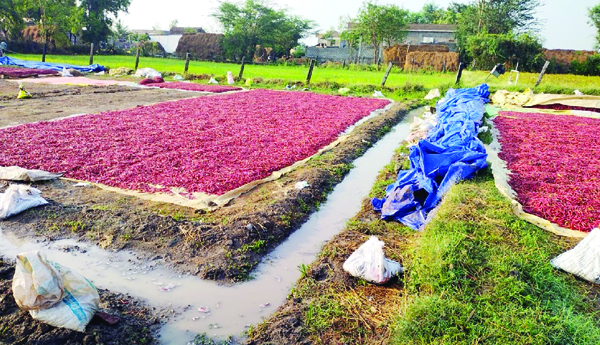 మిర్చి అధికంగా సాగయ్యే గుంటూరు, పల్నాడు, ఎన్టిఆర్, ప్రకాశం, బాపట్ల, కర్నూలు, నంద్యాల జిల్లాల్లో అకాల వర్షాలు కురిశాయి. ఈ జిల్లాలతోపాటు అనంతపురం, సత్యసాయి, కర్ణాటక, తెలంగాణ ప్రాంతాల నుంచి కూడా గుంటూరు యార్డుకు మిర్చి వస్తోంది. మిర్చి నాణ్యత తక్కువగా ఉందని చెబుతూ ప్రస్తుతం కొనుగోలును వ్యాపారులు తగ్గించారు. దీనికితోడు విదేశీ ఆర్డర్లు కూడా గత 15 రోజులుగా నిలిచిపోయాయి. ప్రస్తుతం గుంటూరు మిర్చి యార్డుకు రోజుకు లక్ష టిక్కిలకుపైగా సరుకు వస్తోంది. గత నెలలో నాణ్యమైన సరుకు వచ్చినప్పుడు సగటు ధర రూ.20 నుంచి రూ.25 వేలు ఉండగా ప్రస్తుతం రూ.17 వేల నుంచి రూ.20 వేల మధ్యన ధరలు వస్తున్నాయి. ఈ ఏడాది ఆశించిన స్థాయిలో దిగుబడి రావడంలేదని రైతులు చెబుతున్నారు. మొత్తం నాలుగు కోతల్లో 15 నుంచి 20 క్వింటాళ్ల వరకు దిగుబడి వస్తుందని రైతులు ఆశించగా ఎక్కువ ప్రాంతాల్లో 12 క్వింటాళ్లకు మించి రాలేదు. పెట్టుబడి ఎకరాకు రూ.లక్షకుపైగా పెట్టినట్టు రైతులు చెప్పారు. కనీసం 15 క్వింటాళ్ల దిగుబడి రావాలని, అలాగే క్వింటాలు రూ.20 వేలకు తగ్గకుండా ఉంటేనే కొంత వరకు నష్టాల నుంచి బయటపడతామని అంటున్నారు. గత అక్టోబరులో మాండూస్ తుపానుతో కొంత నష్టం జరిగింది. తరువాత జనవరి నుంచి మార్చి వరకు మూడు నెలల్లోనే అకాల వర్షాలు రైతులను కోలుకోని దెబ్బతీశాయి. మిర్చి తడిసిన ప్రాంతాల్లో నాణ్యత తక్కువగా ఉందని వ్యాపారులు ధరలు తగ్గిస్తున్నారని రైతులు వాపోతున్నారు. పూర్తి స్థాయిలో నాణ్యత అంతగా తగ్గలేదని, స్వల్ప మార్పు మాత్రమే వచ్చిందని రైతులు తెలిపారు.