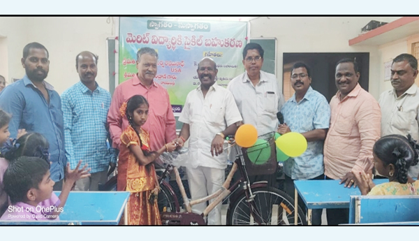 ప్రజాశక్తి - ఆలమూరు (అంబేద్కర్ కోనసీమ) : మండలంలోని చెముడులంక శివారు గాంధీనగర్ మండల పరిషత్ పాఠశాలలో ఉత్తమ ప్రతిభా పాటవాలను కనబర్చిన విద్యార్థిని కె.లావణ్యకు దాత బహునూతుల శ్యామ్ సుందర్ మంగళవారం నూతన సైకిల్ను బహుకరించారు. మరో ఐదుగురు ఉత్తమ విద్యార్థులకు నగదు పురస్కారాలను అందజేశారు. ఈ సందర్భంగా హాజరైన సర్పంచ్ తమ్మన శ్రీనివాస్ మాట్లాడుతూ ... ఇలాంటి ప్రోత్సాహక కార్యక్రమాలు చేపట్టే దాతలైన ప్రతి ఒక్కరినీ అభినందించారు. ప్రతి ఒక్కరు కూడా వారి గ్రామాన్ని అభివృద్ధి పథంలో నడిపించేందుకు సహకారాన్ని అందించాలన్నారు. ఇందుకు తన శాయశక్తుల అభివృద్ధి చేస్తూ ఇప్పటికే గ్రామంలో డ్రైనేజీ వ్యవస్థ, సీసీ రోడ్ల నిర్మాణాలు పూర్తి చేసుకున్నామన్నారు. నాడు, నేడు ద్వారా స్కూళ్లు అభివఅద్ధి జరుగుతుందన్నారు. ప్రజలకు పలు సంక్షేమ కార్యక్రమాలు చేరవేస్తూ అర్హులైనవారిని లబ్ధిదారులుగా చేస్తున్నామన్నారు. శ్యామ్ తన సహకారాలు కూడా అందించి మరింత అభివృద్ధికి తోడ్పడాలని కోరారు. ఈ కార్యక్రమంలో పిఎంసి చైర్మన్ బర్రా వీరబాబు, వైఎస్ఆర్సిపి పార్టీ అధ్యక్షులు దొండపాటి వెంకటేశ్వరరావు(బులిరెడ్డి), దొండపాటి చంటి, మోటూరి సురేష్, ఉపాధ్యాయులు పాల్గొన్నారు.
