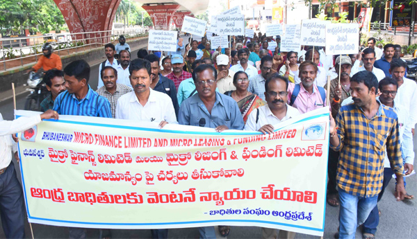ప్రజాశక్తి-కలెక్టరేట్, విశాఖ :ఒడిశా రాష్ట్రంలోని భువనేశ్వర్ మైక్రో ఫైనాన్స్ కంపెనీ ఆస్తులు అమ్మైనా ఆంధ్రా ఖాతాదారులు కట్టిన డబ్బును చెల్లించాలని డిమాండ్ చేస్తూ బుధవారం విశాఖపట్నం డిఆర్ఎం కార్యాలయం సమీపంలో ఉన్న మైక్రో కాంటినెంటల్ హోటల్ వద్ద బాధితులు ధర్నా చేశారు. కంపెనీ ఖాతాదారులందరికీ న్యాయం చేయాలంటూ ప్లకార్డులతో నినాదాలు చేస్తూ అక్కడ నుంచి జివిఎంసి గాంధీ విగ్రహం వరకు ర్యాలీ నిర్వహించారు. ఈ సందర్భంగా సిపిఎం రాష్ట్ర కార్యదర్శివర్గ సభ్యులు కె లోకనాథం, విశాఖ జిల్లా కార్యదర్శి ఎం జగ్గునాయుడు మాట్లాడుతూ తొమ్మిది సంవత్సరాలుగా రాష్ట్రమంతటా 30 వేల మంది ఖాతాదారులకు రూ.30 కోట్లు కంపెనీ చెల్లించాల్సి ఉందన్నారు. మైక్రోఫైనాన్స్ యాజమాన్యం పట్టనట్లు వ్యవహరిస్తోందని విమర్శించారు. వైజాగ్లో ఉన్న కంపెనీ ఆస్తులను చూపించి ఏజెంట్లతో రూ.వేల కోట్ల వ్యాపారం చేయించారని, చెల్లింపు విషయం వచ్చేసరికి సిబిఐ కోర్టులో కేసు ఉందని, పేమెంట్ విషయం చెప్పలేమని దాటవేస్తున్నారని తెలిపారు. కంపెనీ ఆస్తులను అమ్మైనా బాధితులకు న్యాయం చేయాలని డిమాండ్ చేశారు. కూలీనాలీ చేసుకుంటూ కడుపు మాడ్చుకొని కంపెనీని నమ్మి కట్టిన ఖాతాదారులకు చెల్లింపులు చేయకపోతే రాష్ట్రవ్యాప్తంగా పోరాటం ఉధృతం చేస్తామని హెచ్చరించారు. బాధితుల సంఘం అధ్యక్షులు కాత అప్పారావు అధ్యక్షతన జరిగిన కార్యక్రమం సంఘం ఉపాధ్యక్షులు పల్లెల ఈశ్వరరావు, కార్యదర్శి ఎల్.కిరణ్, సహా కార్యదర్శి ఎం బాబూరావు, కమిటీ సభ్యులు బి గంగునాయుడు, జి లక్ష్మి, ఒ భీమునాయుడు, టి నాగరాజు, ఆర్ పోతురాజు, లో రాష్ట్రలోని అన్ని జిల్లాల నుంచి మైక్రో ఫైనాన్స్ కంపెనీ ఏజెంట్లు, ఖాతాదారులు, బ్రాంచి మేనేజర్లు పాల్గొన్నారు.