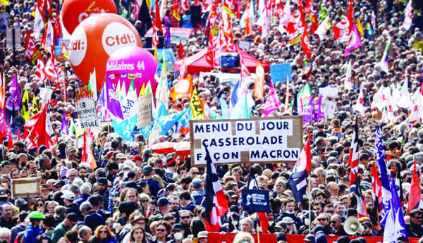 అప్రతిష్టాకరమైన ఈ సంస్కరణలను వెనక్కి తీసుకోకుంటే ఉద్యమాన్ని మరింత తీవ్రతరం చేస్తామని ఉద్యోగ సంఘాలు హెచ్చరించాయి. జనవరి 31 నాడు 12 లక్షల మంది రోడ్ల మీద కొచ్చి నిరసనల్లో పాల్గొన్నారు. ప్రభుత్వం నిర్బంధాన్ని ఎంతగా ప్రయోగించినా లెక్క చేయకుండా జనం పెద్దయెత్తున కదులుతున్నారు. దీంతో కొన్ని చోట్ల ప్రదర్శకులకు, పోలీసులకు మధ్య హింసాత్మక ఘర్షణలు చెలరేగాయి. లోయిరే రీజియన్లోని మోంటార్గిస్లో వేలాది మంది వీధుల్లోకి వచ్చి తమ నిరసనను తెలియజేశారు. పారిశుధ్య కార్మికులు కూడా సమ్మెలోకి దిగడంతో పారిస్ వీధుల్లో టన్నుల కొద్దీ చెత్త పేరుకుపోయింది. రైల్వే ట్రాకులన్నీ ఆందోళన జరుపుతున్న కార్మికులతో కిక్కిరిసిపోయాయి. దేశవ్యాప్తంగా రిఫైనరీల్లో సమ్మెలు జరుగుతున్నాయి. రవాణా కార్మికులు, ఉపాధ్యాయులు కూడా సమ్మె చేశారు. పలు యూనియన్లు, వామపక్ష సంస్థల ఆధ్వర్యంలో రవాణా, విద్య, ఇంధన రంగాలకు చెందిన కార్మికులు ఫ్రాన్స్లోని ప్రధాన నగరాల్లో భారీ ప్రదర్శనలు చేపట్టారు. తమకు గుర్తున్నంతవరకు ఇవి అతిపెద్ద నిరసన ప్రదర్శనలని ఫ్రెంచ్ విశ్లేషకులు చెప్తున్నారు.