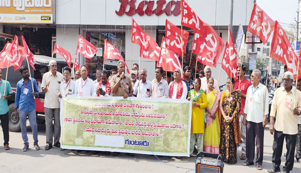 గుంటూరు : పాలస్తీనా పౌరులపై ఇజ్రాయిల్ యుద్ధాన్ని నిరసిస్తూ ... పాలస్తీనా పౌరులకు సంఘీభావంగా సిపిఎం, సిపిఐ, సిపిఐఎంఎల్ రెడ్ స్టార్ వివిధ వామపక్ష పార్టీల ఆధ్వర్యంలో గుంటూరు శంకర్ విలాస్ సెంటర్లో శనివారం నిరసన కార్యక్రమం చేపట్టారు. ఈ నిరసనలో ఆయా పార్టీల నాయకులు, కార్యకర్తలు పాల్గొన్నారు.