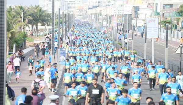 ప్రజాశక్తి - ఎంవిపి కాలనీ (విశాఖపట్నం):ఇండియన్ నేవీ ఆధ్వర్యంలో విశాఖ బీచ్ రోడ్డులో ఆదివారం తలపెట్టిన 'వైజాగ్ నేవీ మారథాన్' ఎనిమిదో ఎడిషన్ ఉత్సాహంగా సాగింది. నాలుగు విభాగాల్లో జరిగిన ఈ మారథాన్లో 20 వేల మంది రన్నర్లు పాల్గన్నారు. 42.2 కిలోమీటర్ల ఫుల్ మారథాన్ను ఉదయం 4:15 గంటలకు తూర్పు నావికాదళాధిపతి, వైస్ అడ్మిరల్ రాజేష్ పంధార్కర్ బీచ్ రోడ్డులోని ఎంజిఎం గ్రౌండ్ వద్ద జెండా ఊపి ప్రారంభించారు. 21.1 కిలోమీటర్ల హాఫ్ మారథాన్ను 5.15 గంటలకు వైస్ అడ్మిరల్ జి శ్రీనివాసన్, పది కిలోమీటర్ల 10 కె రన్ను 6 :15 గంటలకు నగర పోలీస్ కమిషనర్ డాక్టర్ ఎ రవిశంకర్, 5కె రన్ను 6 :45 గంటలకు వైస్ అడ్మిరల్ చీఫ్ అఫ్ స్టాఫ్ హెచ్క్యు సమీర్ సక్సేనా ప్రారంభించారు. 42.2 కిలోమీటర్ల ఫుల్ మారథాన్ ఐఎన్ఎస్ కళింగా వరకు, 21.1 కిలోమీటర్ల హాఫ్ మారథాన్ గీతం యూనివర్సిటీ వరకు, 10కె రన్ తెన్నేటి పార్క్ వరకు, 5కె రన్ కాళీ మాతా గుడి వరకు వెళ్లి మరలా ఎంజిఎం గ్రౌండ్కు చేరుకున్నాయి. ఈ వైజాగ్ నేవీ మారథాస్లో 40 శాతం మంది ఇండియన్ నేవీ సిబ్బంది, కుటుంబీకులు, 60 శాతం మంది ప్రజలు పాల్గన్నారు. ఈ సందర్భంగా తుర్పు నావికాదళాధిపతి రాజేష్ పంధార్కర్ మాట్లాడుతూ రోజువారీ పనుల్లో మానసిక ఒత్తిడికి గురవుతున్న ప్రజలకు ఉపశమనం కలిగించేందుకు ఈ కార్యక్రమం దోహదపడుతుందన్నారు. మారథాన్ విజేతలకు జిల్లా కలెక్టర్ ఎ మల్లికార్జున బహుమతులు అందజేశారు.