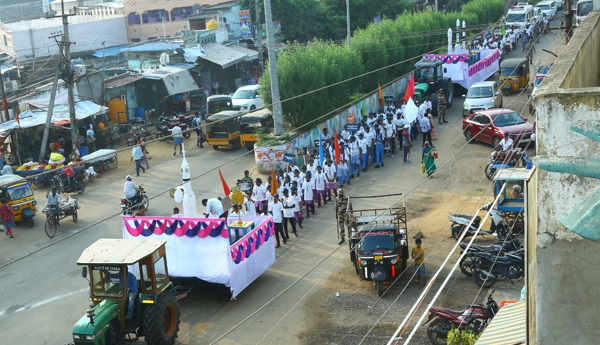 ప్రజాశక్తి-సూళ్లూరుపేట(తిరుపతి): భారత అంతరిక్ష పరిశోధన సంస్థ దేశ వ్యాప్తంగా నిర్వహిస్తున్న ప్రపంచ అంతరిక్ష వారోత్సవాలలో భాగంగా స్పేస్ వాక్ నిర్వహించారు. ఆదివారం సూళ్లూరుపేటలోని ప్రభుత్వ జూనియర్ కళాశాల ఆవరణం నుండి డిఓఎస్ కాలనీ వరకు జరిగిన స్పేస్ వాక్ను షార్ డైరెక్టర్ రాజరాజన్ జెండా ఊపి ప్రారంభించారు. ఈ సందర్భంగా షార్ డైరెక్టర్ మాట్లాడుతూ.. సైన్సు పరంగా అంతరిక్ష పరిశోదల ద్వారా మనం సాధిస్తున్న ప్రగతిని గురించి అందరికి తెలియ జేయడమే ఈ స్పేస్ వాక్ ముఖ్య ఉద్దేశమని అన్నారు. ఈ స్పేస్ వాక్ ర్యాలీలో పెద్ద సంఖ్యలో విద్యార్థులు పాల్గొని భారతమాతకు జై అంటూ ఇస్రోకు జైజై అంటూ నినాదాలు చేస్తూ అందరి దృష్టిని ఆకర్షించారు. ఈ ర్యాలీలో ఇస్రో అధికారులు ప్రదర్శనకు ఉంచిన రాకెట్ నమూనాలలొ భవిషత్ మానవ సహిత ప్రయోగ హెచ్ ఆర్ఎల్ వి రాకెట్ నమూనా ప్రధాన ఆకర్షణగా నిలిచింది. ఈ కార్యక్రమంలో షార్ గ్రూప్ డైరెక్టర్ గోపికృష్ణ, డబ్ల్యుఎస్డబ్ల్యు సూళ్లూరుపేట ప్రోగ్రాం చైర్మన్ సంబు ప్రసాద్, ఎస్ఎంపిసి డిప్యూటీ డైరెక్టర్ రమేష్ బాబు, సూళ్లూరుపేట తహశీల్దార్ రవి కుమార్ తదితరులు పాల్గొన్నారు.