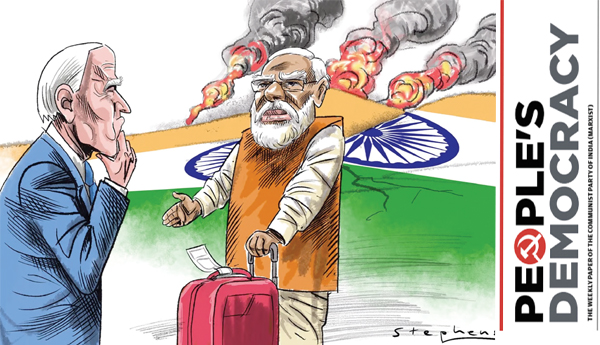 భారత్లో ప్రజాస్వామ్యంపై దాడులు, మతపరమైన మైనారిటీల హక్కుల నిరాకరణ అంశాలను అమెరికా అధ్యక్షుడు బైడెన్ లేవనెత్తుతారా లేదా అన్న అంశంపై చాలా చర్చ జరిగింది. భారత్లో మానవ హక్కులు, ప్రజాస్వామ్య విలువలు పరిరక్షించాల్సిన అవసరాన్ని మోడీతో చర్చించాలంటూ 75 మంది అమెరికన్ కాంగ్రెస్ సభ్యులు బైడెన్కు విజ్ఞప్తి చేశారు. ప్రజాస్వామ్యంపై, మానవ హక్కులపై బైడెన్ ప్రభుత్వం మరింత దృఢంగా వుండాలని కొన్ని ఉదారవాద వర్గాలు భావించాయి. కానీ, ప్రజాస్వామ్యం, పరస్పరం పంచుకునే విలువల పట్ల మరింత నిబద్ధతతో ఏ అమెరికా ప్రభుత్వమైనా నిలబడాలని భావించడం కేవలం భ్రమ. వాస్తవానికి, మితవాద కమ్యూనిస్టు వ్యతిరేకులైన సైనిక నియంతలు, నిరంకుశ పాలకులతో వ్యవహరించడానికే అమెరికా ఎప్పుడూ ప్రాధాన్యత ఇస్తుంది. బైడెన్ ప్రభుత్వానికి సంబంధించినంతవరకు, గత అమెరికా ప్రభుత్వాల మాదిరిగానే, అమెరికా సామ్రాజ్యవాద భౌగోళిక, రాజకీయ ప్రయోజనాలే కీలకం. ఇక నరేంద్ర మోడీని చూసినట్లైతే, దేశీయంగా తన ప్రతిష్టను పెంచుకోవడానికి ఈ అమెరికా పర్యటన, ఫలితాలు కొంత ఉపయోగపడతాయి. ఆర్ఎస్ఎస్ ఎప్పుడూ సామ్రాజ్యవాద అనుకూలమే కాగా, బడా బూర్జువాల నేతృత్వంలోని భారత పాలక వర్గాలు అమెరికాతో వ్యూహాత్మక పొత్తు కోసం పాతుకుపోతున్నాయి. అమెరికా మిత్రపక్షంగా అన్నింటికీ లొంగివుండే కింది స్థాయి హోదా అయినా అదొక గొప్ప ఘన విజయంగా భావించే ఈ దృక్పథం కార్పొరేట్ మీడియాలో బాగా ప్రబలంగా వుంది.