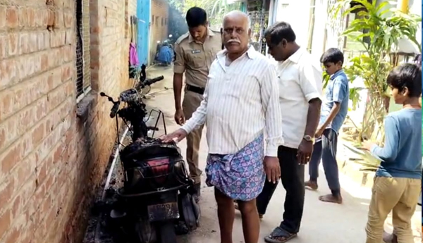 ప్రజాశక్తి-బి.కొత్తకోట(అన్నమయ్యజిల్లా) : తంబళ్లపల్లి నియోజకవర్గం,బి.కొత్తకోట పట్టణం స్థానిక బైపాస్ రోడ్డులోని ఇంటి ముందు నిలిపి ఉన్న ద్విచక్ర వాహనాన్ని అర్ధరాత్రి మూడు గంటల ప్రాంతంలో గుర్తుతెలియని దుండగులు దగ్ధం చేశారు. అనంతరం ఇంటి తలుపు ముందర గోనెసంచులు, రబ్బర్లు వేసి పెద్ద ఎత్తున మంటలు పెట్టి పరారయ్యారు. ఒక్కసారిగా శబ్దాలు రావడంతో భయాందోళనకు గురైన కుటుంబ సభ్యులు బయటకు వచ్చి చూసి మంటలను అదుపు చేయడంతో పెద్ద ప్రమాదం తప్పింది. కక్షపూరితంగానే తమ ఇంటిపై ఇంత దారుణానికి తెగబడ్డారని, ఇంతవరకు తమకు ఎవరితోనూ విభేదాలు లేవంటూ బాధితుడు కుటుంబ పెద్ద విష్ణు కుమార్ తెలిపారు. ద్విచక్ర వాహనానికి నిప్పు పెట్టిన దుండగులను అరెస్ట్ చేసి, తమకు న్యాయం చేయాలని విజ్ఞప్తి చేశారు. ప్రమాద స్థలాన్ని పరిశీలించి కేసు నమోదు చేసి బి.కొత్తకోట పోలీసులు విచారణ చేపట్టారు.