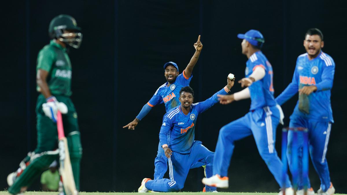 కొలంబో: ఎసిసి ఎమర్జింగ్ ఆసియాకప్లో భారత యువ క్రికెటర్లు అదరగొట్టారు. స్వల్ప లక్ష్యాన్ని బంగ్లాదేశ్ాఎ ముందు ముంచినా.. ఆ లక్ష్యాన్ని బంగ్లా బ్యాటర్స్ ఛేదించకుండా నిలువరించిన తీరు వర్ణనాతీతం. తొలిగా బ్యాటింగ్కు దిగిన భారత్-ఎ జట్టు 49.1ఓవర్లలో 211పరుగులకు ఆలౌట్ కాగా.. ఛేదనలో బంగ్లాదేశ్-ఎను 34.2 ఓవర్లలో 160పరుగులకే పరిమితం చేసి 51పరుగుల తేడాతో విజయం సాధించింది. ఛేదన బంగ్లాదేశ్కు ఓపెనర్లు అద్భుత ఆరంభాన్నిచ్చారు. మహ్మద్(38), హసన్(51) కలిసి తొలి వికెట్కు 70పరుగుల గట్టి పునాదిని వేశారు. బంగ్లా జట్టు తొలి వికెట్ కోల్పోయిన అనంతరం భారత స్పిన్నర్లు నిషాంత్ సంధు(5/20), మానవ్(3/32) సమిష్టిగా చెలరేగారు. దీంతో బంగ్లాదేశ్ బ్యాటర్స్కు కష్టాలు తప్పలేదు. రెండో వికెట్ను 94పరుగుల వద్ద కోల్పోయిన బంగ్లా ఆ తర్వాత వరుసగా వికెట్లు కోల్పోయి ఓటమిపాలైంది. దీంతో బంగ్లాదేశ్ జట్టును 34.2ఓవర్లలో 160పరుగులకు ఆలౌటైంది. ఈ గెలుపుతో భారత్ాఎజట్టు 8వ ఎసిసి ఎమర్జింగ్ ఆసియాకప్ టైటిల్పై కన్నేశారు. అంతకుముందు టాస్ ఓడి తొలిగా బ్యాటింగ్కు దిగిన భారతజట్టుకు శుభారంభం దక్కలేదు. పాకిస్తాన్పై చెలరేగిన సాయి సుదర్శన్(21) త్వరగా పెవీలియన్కు చేరాడు. అభిషేక్ శర్మ(34) రాణించినా.. కెప్టెన్ యశ్ ధుల్(66) మినహా మిగతా బ్యాటర్ నిరాశపరిచారు. భారత్-ఎ జట్టు ఓ దశలో 137పరుగులకే 7వికెట్లు కోల్పోయి పీకల్లోతు కష్టాల్లో పడింది. ఆ దశలో కెప్టెన్ యశ్ ధుల్ కెప్టెన్సీ ఇన్నింగ్స్ ఆడాడు. దీంతో భారతజట్టు 211పరుగుల గౌరవప్రద స్కోర్ చేయగల్గింది. మెహిదీ హసన్, తంజిమ్, రఖీబుల్కు రెండేసి, రిపోన్, సైఫ్, సర్కార్కు ఒక్కో వికెట్ దక్కాయి. ప్లేయర్ ఆఫ్ ది మ్యాచ్ యశ్ ధుల్కు లభించింది.