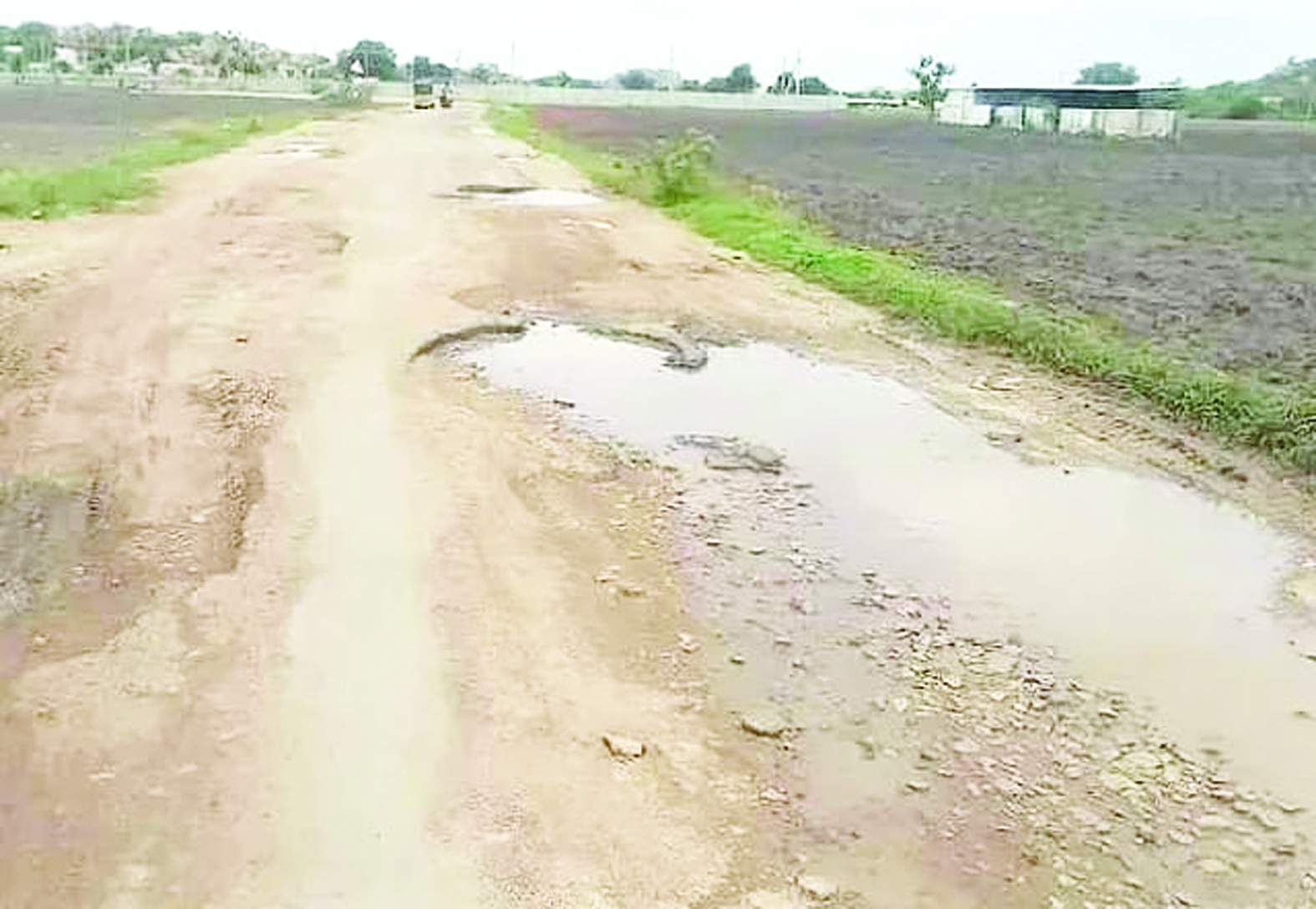 గుంతలమయమైన గ్రామీణ రోడ్డు