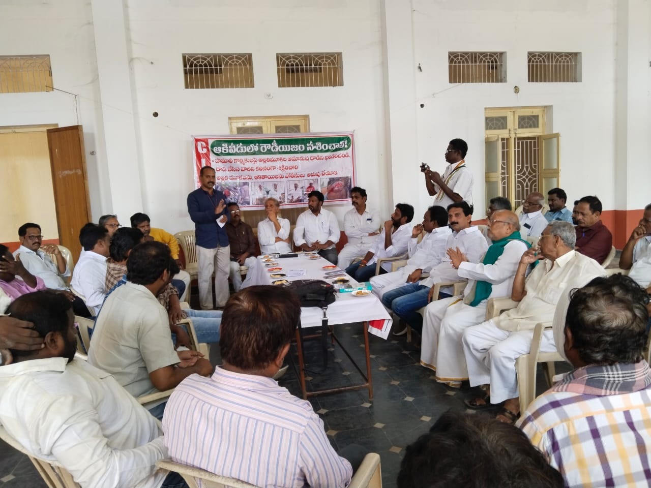 పట్టణంలో పెరుగుతున్న అరాచకాలను, ఆగడాలను అధికారులు వెంటనే అరికట్టాలని, లేనిపక్షంలో అన్ని రాజకీయ పార్టీలు, ప్రజాసంఘాలు కూటమిగా ఏర్పడి ఉద్యమించాల్సి వస్తుందని అఖిలపక్షాల రౌండ్ టేబుల్ సమావేశం హెచ్చరించింది. ఇటీవల ముఠాకార్మికులపై జరిగిన దాడిపై శనివారం ప్రజాసంఘాల కార్యాలయంలో వివిధ రాజకీయ పార్టీలు, ప్రజా సంఘాలు, పలు సామాజిక సంస్థలతో సిఐటియు ఆధ్వర్యాన రౌండ్ టేబుల్ సమావేశం నిర్వహించారు. ఈ సమావేశానికి సిఐటియు మండల కార్యదర్శి కె.తవిటి నాయుడు అధ్యక్షత వహించారు. సిఐటియు జిల్లా అధ్యక్షులు జెఎన్వి.గోపాలన్ ముఖ్యఅతిథిగా పాల్గొని మాట్లాడారు. రౌడీ మూకల వల్ల సామాన్యులు రోడ్డు మీద తిరగలేని పరిస్థితి ఏర్పడిందన్నారు. కార్యాలయంలో కూర్చున్న ముఠాకార్మికులపై అన్యాయంగా దాడి చేసిన తెలగపాముల యువకులపై ప్రభుత్వం కఠిన చర్య తీసుకోవాలని ఆయన డిమాండ్ చేశారు. ఈ రకమైన విధానాలను ప్రతి ఒక్కరూ ప్రతిఘటించాలని పిలుపునిచ్చారు. వైసిపి పట్టణ అధ్యక్షులు గుండా సుందరరామనాయుడు, తూర్పు కాపు కార్పొరేషన్ డైరెక్టర్ జగ్గురోతి విజరు, నగర పంచాయతీ కౌన్సిలర్ కట్ట రవీంద్రనాథ్ మాట్లాడుతూ కార్మికులపై దాడిని ఖండిస్తున్నామన్నారు. టిడిపి నాయకులు బొల్లా వెంకట్రావు, గంధం ఉమా సత్యనారాయణ మాట్లాడుతూ నాటుసారా, విచ్చలవిడిగా మద్యం విక్రయాల వల్లే యువకులు పెడదోవ పట్టి ఇలాంటి దాడులకు పాల్పడుతున్నారన్నారు. దీనిపై ప్రభుత్వం దృష్టిపెట్టాలన్నారు. అనంతరం సామాజిక న్యాయ సేవా సంఘం నిర్వాకులు డివి.రమణమూర్తి, జనసేన నాయకులు గవర అనిల్, తోట వాసు, ఐద్వా మండల అధ్యక్షురాలు డోకల లక్షీ మాట్లాడారు. అనంతరం దీనిపై ప్రత్యేక కమిటీని ఏర్పాటు చేయాలని తీర్మానించారు. ఈ కార్యక్రమంలో పట్టణ ప్రముఖులు లంక సూర్యారావు, న్యాయవాది సూరంపూడి ఆంజనేయులు, మన్నే సుబ్రహ్మణ్యం కుంకట్ల దానయ్య, ఎమ్డి అజ్మల్, జక్కీ అహ్మద్, ప్రజాసంఘాల నాయకులు డోకల రవి, బివి.వర్మ, బి.రాంబాబు, ఎస్.సూరిబాబు, డి.సత్యనారాయణ, పెంకి అప్పారావు, ముఠా కార్మికులు సత్యం, మణిపురి, జి.రాంబాబు, అప్పలనాయుడు, రమణ పాల్గొన్నారు.