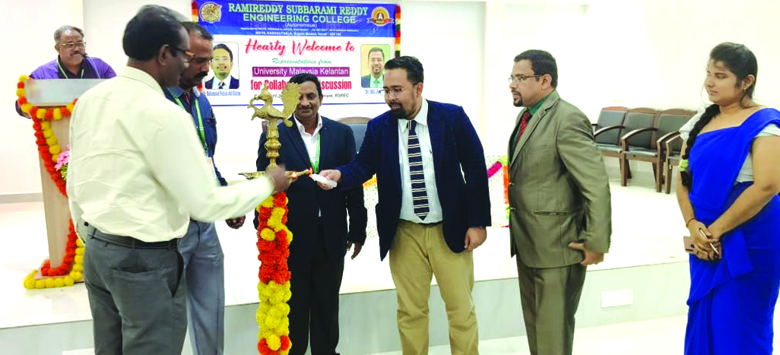 ప్రజాశక్తి-బిట్రగుంట:ద్య, పరిశోధన అంశాల పై పరస్పరం సమాచారం , సహకారం ఇచ్చి పుచ్చుకోవడానికి కావాల్సిన అంశాలను చర్చించడానికి మలేషియా వర్సిటీ అధికారులు డాక్టర్లు మహ్మద్ అబ్దుల్ కరీం, డాక్టర్ మొహమ్మద్ ఆరీఫుల్లా గురువారం కడనూతల గ్రామంలోని ఆర్ఎస్ఆర్ ఇంజినీరింగ్ కళాశాలను సందర్శించారు. ఈ సందర్భంగా కళాశాల డైరెక్టర్ రాజారెడ్డి మాట్లాడుతూ మలేషియా వర్సిటీ అధికారులు ,ఆర్ ,ఎస్, ఆర్ ఇంజినీరింగ్ కళాశాల డైరెక్టర్ డాక్టర్ రాజా రెడ్డి, ప్రిన్సిపల్ డాక్టర్ పి. వీర నారాయణ రెడ్డి అన్ని విభాగాధిపతులతో సమావేశమై పలు అంశాలపై చర్చించామని తెలిపారు. పరిశోధన అంశాలలో సహకారం ఎక్స్చేంజి కార్యక్రమంలో భాగంగా ఆర్,ఎస్,ఆర్ ఇంజినీరింగ్ కళాశాల విద్యార్థులకు మలేషియా వర్సిటీలో శిక్షణ ఇచ్చేందుకు సిద్ధమైనట్లు తెలిపారు. కార్యక్రంలో కళాశాల డైరెక్టర్ డాక్టర్ రాజా రెడ్డి , ప్రిన్సిపల్ డాక్టర్ వీర నారాయణ రెడ్డి, ఎఒ,రమణారెడ్డి, వివిధ విభాగాధిపతులు, సిబ్బంది పాల్గొన్నారు.