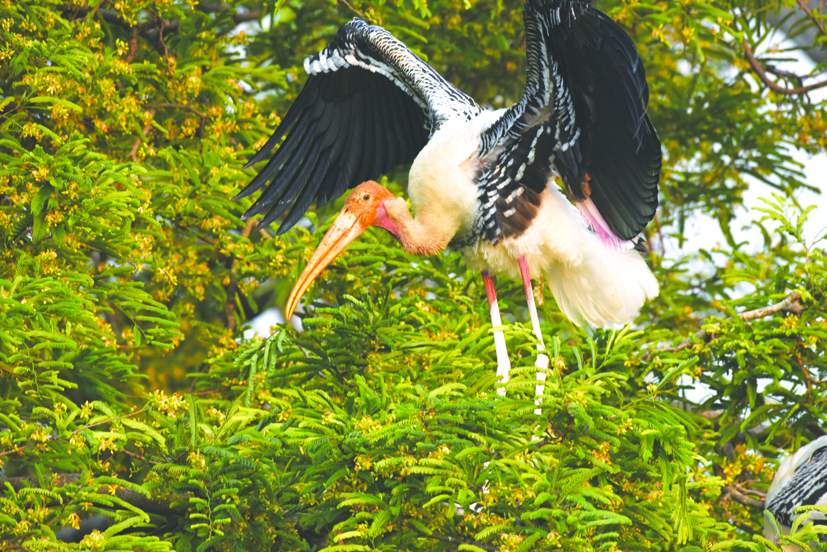పిల్లలను పొదిగి పెద్దగ చేసే క్రమంలో ఆహారం అధికంగా పక్షులకు అవసరమవుతోంది. ఒక్కో పక్షికి సగటున 500 గ్రాముల వరకు ఆహారాన్ని తీసుకుంటుంది. ఇందులో 90 శాతం వరకు చేపలే ఉంటాయి. తక్కినవి చూస్తే కప్పలు, పాములూ ఉంటాయి. పక్షులు ఈ ఏడాది అధిక కావడంతో ఆహారం కొరత సమస్య వాటికి ఏర్పడుతోంది. దీంతో ఆహారం లేక కొన్ని పక్షులు ఎగరలేక కిందపడిపోతున్నాయి. వీటి సంరక్షణ చేపట్టాల్సిన బాధ్యత అటవీ శాఖ చూడాల్సి ఉంది. కాని అటవీశాఖకు నిధుల కొరత వెంటాడుతున్నట్టు సమాచారం. దీంతో పక్షుల సంరక్షణ ఆగమ్య గోచరంగానే మారింది. దీని కోసం ప్రత్యేకంగా నియమించిన వేణుగోపాల్రెడ్డి అనే వాచ్ వార్డుయే ప్రకృతి ప్రేమికుల సహకారంతో వాటిని సంరక్షించే బాధ్యత చూస్తున్నారు. గతంలో వీటి సంరక్షణ కోసం రూ.80 లక్షలతో ప్రత్యేక ప్యాకేజీ కోసం ప్రతిపాదనలు పంపారు.
