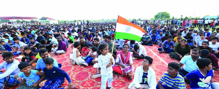 గూడూరుటౌన్: పట్టణంలోని అల్లూరు ఆదిశేషరెడ్డి గ్రౌండ్లో జనవిజ్ఞాన వేదిక అధ్యక్షులు రాజేంద్ర ప్రసాద్ ఆధ్వర్యంలో భారీ స్క్రీన్ ఏర్పాటు చేయడం జరిగింది. పట్టణ ప్రజలు, క్రీడాభిమానులు ఆనంద కోలాహలాల మధ్య మ్యాచ్ చూశారు. రాజేంద్రప్రసాద్ మాట్లాడుతూ బిగ్ స్క్రీన్ ఏర్పాటు చేయడానికి అనుమతించిన శాసనసభ్యులు వరప్రసాదరావు, ఆర్డిఓ కిరణ్ కుమార్కి ధన్యవాదాలు తెలిపారు.