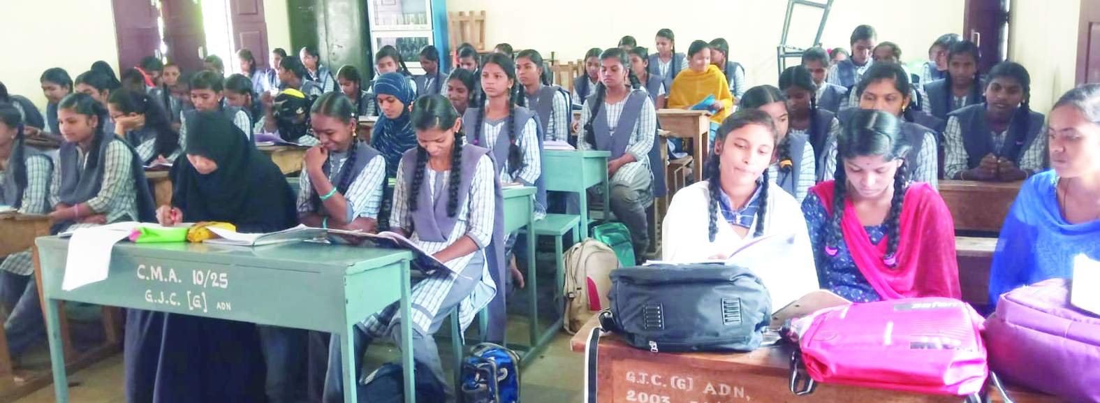 కళాశాలలో కూర్చున్న ఇంటర్మీడియట్ విద్యార్థులు