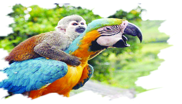 అది భయపడుతుంటే కోతి, చిలుక పగలబడి నవ్వుకున్నాయి.
