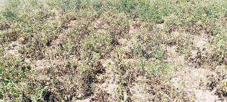 వర్షాధారంగా సాగు చేసిన మెట్ట పంటలను వర్షం దెబ్బ తీసింది. సకాలంలో వానల్లేక వేసిన పంటలు చేతికి అందివస్తాయో లేదోనని రైతులు ఆందోళన చెందుతున్నారు. అరకొరగా వర్షాలు కురవడం, ఆ తర్వాత ఖరీఫ్ సీజన్లో వర్షాధారంగా మెట్ట భూముల్లో వేరుశనగ సాగు చేసిన రైతాంగానికి లోటు వర్షపాతం తీరని నష్టాన్ని మిగిల్చింది. అదునులో పదును వాన కురవక పంటల సాగు విస్తీర్ణం గణనీయంగా తగ్గింది. మండల పరిధిలో వేరుశనగ సాధారణ సాగు విస్తీర్ణం 250 నుంచి 300 హెక్టార్లు కాగా ఈ ఖరీఫ్లో సగానికి సగం మాత్రమే సాగింది. సాధారణ సాగులో 20 శాతం పంట మాత్రమే రైతులు సాగు చేయడానికి ఆశక్తి చూపడం లేదు. నాలుగైదు సంవత్సరాలుగా రైతులు వేరుశనగ పంట వేయడానికి నిరాశక్తి వ్యక్తం చేస్తున్నారు. వేసిన పంటలకు కూడా ఆరకొరా వర్షానికి ఎండుతూ పండిన పంట దిగుబడి పడిపోవడంతో పాటు వర్షం కురవక రైతులు ట్యాంకర్లతో నీటిని పిచికారి చేయాల్సిన దుస్థితి ఏర్పడింది. సకాలంలో వర్షాలు కురువకపోవడంతో వంద రోజుల్లో నూర్పిడి చేయాల్సిన వేరుశనగ 140 రోజులు దాటినా చేతికి అందక పోవడం, ట్యాంకర్లతో నీటిని తోలి పంటను నూర్పిడి చేస్తున్నారు. ఇలా చేయడంతో ఎకరానికి నాలుగైదు వేలు అదనంగా ఖర్చు చేయాల్సి వస్తుందని రైతుల ఆవేదన వ్యక్తం చేస్తున్నారు. తీవ్ర వర్షాభావంతో అరకొరక పండిన పంట నూర్పిడికి రైతులకు తిప్పలు తప్పడం లేదు. చేతికొచ్చిన పంటను సకాలంలో నూర్పిడి చేయడానికి పదును వాన కరువైంది. ఎండిపోతున్న వేరుశనగ మొక్కలను తీయడానికి రైతులు ట్యాంకర్లతో నీటిని పిచికారి చేస్తున్నారు ట్యాంకర్లతో నీటి తడి అందించడానికి ఎకరానికి 6 నుంచి 7 ట్యాంకర్లు నీరు అవసరమని రైతులు వాపోతున్నారు. అంతంత మాత్రంగా పండిన పంట నూర్పిడికి అదనంగా నాలుగైదు వేలు ఖర్చు చేయాల్సి వస్తుందని, ట్యాంకర్లతో నీటిని పిచికారి చేయడంతో అంతర పంటలు దెబ్బతిని అతను ఆదాయం కూడా కోల్పోవాల్సి వస్తుందని, ఎకరాని ఐదు బస్తాలు లోపే దిగుబడి రావడంతో పెట్టుబడి ఖర్చులు కూడా చేతికి రావడం లేదని రైతుల ఆవేదన వ్యక్తం చేస్తున్నారు.