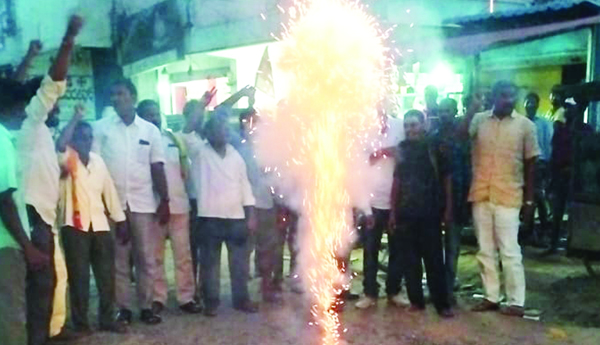 సాలూరు రూరల్ : మండలంలోని మామిడిపల్లిలో టిడిపి నాయకులు బాణా సంచా పేల్చుతూ సంబరాలు జరుపుకున్నారు. కార్యక్రమంలో మండల అధ్యక్షులు ఆముదాల పరమేష్, రైతు సంఘం అధ్యక్షులు బూస తవుడు, తడుతూరి తిరుపతిరావు, డొంక అన్నపూర్ణ, కరుణ, భారతి, రవణమ్మ, మజ్జి శ్రీను పాల్గొన్నారు.