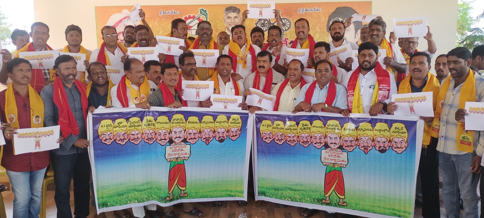 హిందూపురం : నాలుగేళ్ల వైసిపి పాలనలో రాష్ట్రంలో ప్రజలందరికీ అన్యాయమే జరిగిందని టిడిపి నాయకులు తెలిపారు. రాష్ట్ర ప్రయోజనాలు తొక్కి పెట్టిన జగనాసుర పాలనను అంతమొందించాలని పేర్కొంటూ సోమవారం టిడిపి నాయకులు పెనుకొండ రోడ్డులో నిరసన తెలిపారు. ఈ సందర్బంగా జగన్ ప్రతిమతో రావణాసుర ప్లకార్డులను తగలబెట్టే ప్రయత్నం చేయగా, పోలీసులు అడ్డుకున్నారు. దీంతో ఆగ్రహంతో వాటిని చింపి నిరసన తెలిపారు. ఈ సందర్భంగా వారు మాట్లాడుతూ జగన్ అక్రమ ఆస్తుల కేసులో నిందితుడుగా 16 నెలల పాటు జైలు శిక్ష అనుభవించారన్నారు. రాష్ట్రంలో ఇసుక, మద్యం, మైనింగ్, మాఫియాలు నడుస్తోందన్నారు. వైకాపా ప్రభుత్వ పాలనపై ప్రజల్లో ఎంత అసంతప్తితో ఉన్నారనన్నారు. ఈ కార్యక్రమంలో టిడిపి పార్లమెంట్ ప్రధాన కార్యదర్శి అంబికా లక్ష్మీనారాయణ, పట్టణ అధ్యక్షులు డిఈ రమేష్ కుమార్, రాష్ట్ర కార్యదర్శులు కొల్లకుంట అంజినప్ప, రామాంజినమ్మ, రూరల్ మండల కన్వీనర్ అశ్వర్థ రెడ్డి, అసెంబ్లీ అధ్యక్షులు బాబా ఫక్రొద్దిన్, రాష్ట్ర బిసి, తెలుగు మహిళా కార్యదర్శిలు బేవినహల్లి ఆనంద్, అమర్నాథ్, పరిమళ, వెంకటరమణ, సీనియర్ నాయకులు నెట్టప్ప, రాము, మొద శివకుమార్, కౌన్సిలర్లు సతీష్ కుమార్, రాఘవేంద్ర, దుర్గా నవీన్, ఐటీడీపీ అధ్యక్షులు నజీర్ అహ్మద్, పార్లమెంట్ కార్యదర్శి ఆదినారాయణ, నందీష్ పార్లమెంటు లీగల్ సెల్ అధ్యక్షులు శివశంకర్, నాయకులు దాదా పీర్, కొట్నుర్ నాగభూషణ, రామకష్ణారెడ,ి్డ హనుమంత రాయుడు, షబ్బీర్, అమీన్, అశోక్, అబూబకర్, చిన్నారెడ్డి పాల్గొన్నారు.