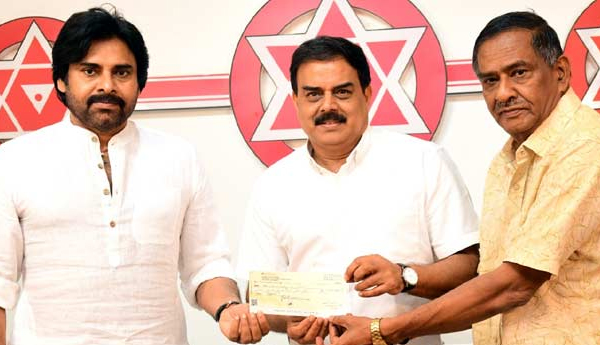 ప్రజాశక్తి - అమరావతి బ్యూరో : జనసేన పార్టీ క్రియాశీలక సభ్యత్వ నమోదు, ప్రమాదబీమా చేయించేందుకు ఆ పార్టీ అధ్యక్షులు పవన్ కల్యాణ్ రూ.కోటి విరాళం ప్రకటించారు. ఈ మేరకు బుధవారం హైదరాబాద్లోని పార్టీ కార్యాలయంలో పార్టీ రాజకీయ వ్యవహారాల కమిటీ ఛైర్మన్ నాదెండ్ల మనోహర్, పార్టీ కోశాధికారి ఎవి రత్నంకు రూ.కోటి చెక్కును పవన్ కల్యాణ్ అందజేశారు. ఈ సందర్భంగా క్రియాశీలక సభ్యత్వ నమోదు కార్యక్రమంలో చురుగ్గా పాలుపంచుకుంటున్న పార్టీ వాలంటీర్లకు అభినందనలు తెలిపారు.