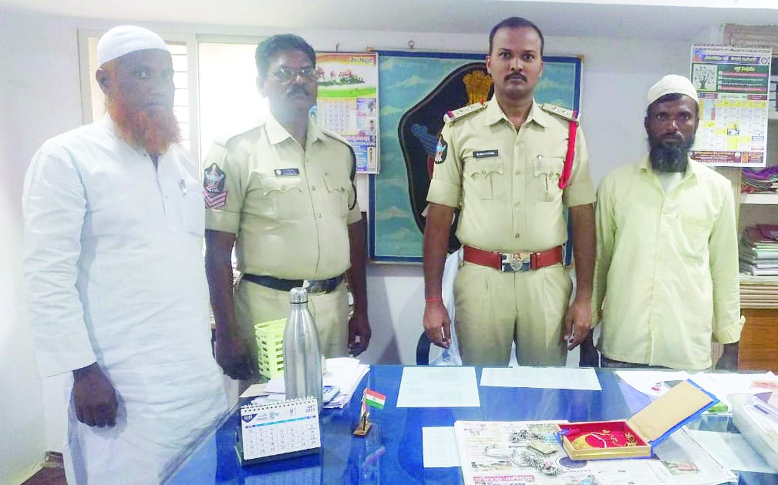 మండలంలోని కొత్తపేట గ్రామంలో బుధవారం షేక్షావలీ ఇంట్లో 3 తులాల బంగారు నగలు, 30 తులాల వెండి కడియాలు, పట్టీలు, రూ.2 వేల నగదును దుండగులు దొంగతనం చేశారు. బాధిత కుటుంబ సభ్యులు ఎస్ఐ భూపాలుడు దృష్టికి తీసుకెళ్లారు. తక్షణమే స్పందించిన ఎస్ఐ గ్రామానికి వెళ్లి సంఘటన జరిగిన ఇంటిని పరిశీలించారు. గ్రామస్తులతో సమావేశం నిర్వహించి డాగ్ స్క్వాడ్ను పిలిపించి గ్రామంలో తనిఖీలు నిర్వహిస్తామని హెచ్చరించారు. భయానికి గురైన దుండగుడు రాత్రి 9 గంటల సమయంలో విద్యుత్ పోయినప్పుడు అపహరించిన నగదు, బంగారు, వెండి నగలను ఓ బట్టలో మూటగట్టి బాధితుని ఇంటి ముందు పెట్టి వెళ్లారు. కొంత సమయానికి విద్యుత్ రావడంతో మూటగట్టిన బట్టను బాధిత కుటుంబ సభ్యులు విప్పి చూశారు. చోరీకి గురైన నగదు, బంగారు, వెండి ఆభరణాలు ఉన్నాయని గ్రహించి ఎస్ఐ భూపాలుడుకు వివరించారు. చోరీకి గురైన సొమ్ము రికవరీ కావడంతో గురువారం గ్రామ పెద్ద బాబు, గ్రామస్తులు పోలీసు స్టేషన్కు వెళ్లి ఎస్ఐకి కృతజ్ఞతలు తెలిపారు.