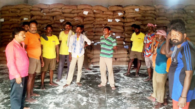 కార్మికులతో మాట్లాడుతున్న నాయకులు
