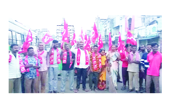 సాలూరు: సిఎం జగన్ మోహన్ రెడ్డి ఇచ్చిన హామీలను అమలు చేయాలని కోరుతూ సోమవారం మున్సిపల్ కార్మికులు ర్యాలీ నిర్వహించారు. మున్సిపల్ వర్కర్స్ యూనియన్ జిల్లా కార్యదర్శి ఎన్వైనాయుడు అద్వర్యాన నిర్వహించిన ర్యాలీ గాంధీనగర్ లో మొదలై ప్రధాన రహదారి మీదుగా మున్సిపల్ కార్యాలయం వరకు సాగింది. జిల్లాలోని మున్సిపల్ కార్మికులతో మంగళవారం కలెక్టర్ కార్యాలయం వద్ద వంటావార్పు నిర్వహిస్తామని చెప్పారు. మున్సిపాలిటీలలో పని చేస్తున్న కాంట్రాక్టు అవుట్ సోర్సింగ్ కార్మికుల ను రెగ్యులర్ చేస్తానని, సమాన పనికి సమాన వేతనం చెల్లిస్తామని సిఎం జగన్ మోహన్ రెడ్డి ఇచ్చిన హామీలను అమలు చేయాలని డిమాండ్ చేశారు. కార్యక్రమంలో మున్సిపల్ వర్కర్స్ యూనియన్ నాయకులు టి.శంకరరావు, స్వప్న, బాలరాజు, టి.రవి, టి.రాముడు పాల్గొన్నారు.