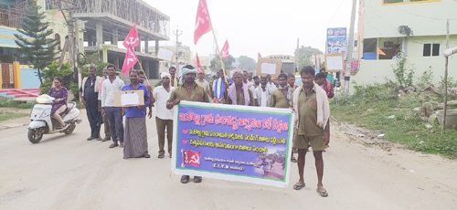 గత నాలుగు రోజుల నుండి ఇంకొల్లు పంచాయతి కార్మీకులు చేస్తున్న రిలే నిరాహార దీక్షలకు సిఐటియు నాయకులు గురువారం మద్దతు ప్రకటించారు. ప్రధాన వీధుల్లో నిరసన ప్రదర్శన చేశారు. గత 3నెలల నుండి ఉన్న వేతన బకాయిలు వెంటనే చెల్లించాలని నినాదాలు చేశారు. అనంతరం బస్టాండ్ సెంటర్లో సభ నిర్వహించారు. అధికారులు, నాయకులు ఎవ్వరూ తమ గోడు పట్టించుకోవటం లేదని పంచాయతి కార్మీకులు ఆవేదన వ్యక్తం చేశారు. కార్యక్రమంలో సిఐటియు పర్చూరు నియోజకవర్గ నాయకులు జి ప్రతాప్ కుమార్, ఇంకొల్లు నాయకులు నాగండ్ల వెంకట్రావు, పంచాయతి కార్మీకులు రంగారావు, శ్యాం, సుబ్బరావు, వెంకటేశ్వర్లు పాల్గొన్నారు.