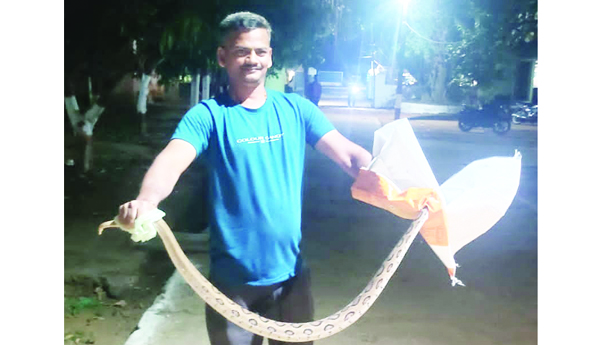 పామును పట్టుకున్న హోంగార్డు