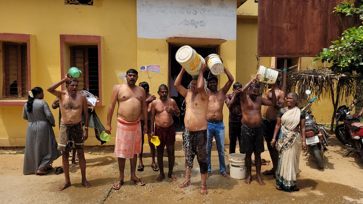 చిలమత్తూరు : 'ఇళ్లు లేని తాము ప్రభుత్వ స్థలంలో గుడిసెలు వేసుకుంటే వాటిని నిర్ధాక్షిన్యంగా తొలగించారు. ఇప్పుడు నిలువనీడ లేకుండా పోయాం. ఇళ్ల స్థలాలు ఇచ్చేంత వరకు తహశీల్దార్ కార్యాలయమే మా నివాసం'. అంటూ పేదలు తహశీల్దార్ కార్యాలయం వద్ద నిరసనాగ్రహం వ్యక్తం చేశారు. ఇళ్ల స్థలాలు ఇవ్వాలని గత 20 రోజులుగా చిలమత్తూరులో సిపిఎం, వ్యకాసం ఆధ్వర్యంలో పేదలు ఆందోళనలు చేస్తున్న విషయం తెలిసిందే. అధికారులు పేదలు వేసుకున్న గుడిసెలను తొలగించడంతో శనివారం నాడు వారు తహశీల్దార్ కార్యాలయం వద్దకు చేరుకుని అక్కడే స్నానాలు చేసి నిరసన తెలిపారు. వ్యవసాయకార్మిక సంఘం జిల్లా అధ్యక్షుడు ఫిరంగి ప్రవీణ్ కుమార్తో పాటు పేదలు తహశీల్దార్ కార్యాలయం ఆవరణంలో బహిరంగంగా స్నానం చేసి నిరసన తెలిపారు. ఈ సందర్భంగా పేదలు మాట్లాడుతూ ఇళ్లు లేని తాము ప్రభుత్వ భూమిలో గుడిసెలు వేసుకుంటే అధికారులు కక్షగట్టి వాటిని తొలగించారన్నారు. గుడిసెలకు నిప్పుపెట్టడంతో అందులో ఉన్న వస్తువులన్నీ కాలిబూడిదయ్యాయన్నారు. తమకు నిలువనీడ లేకుండా చేసిన అధికారుల తీరును నిరసిస్తూ తహశీల్దార్ కార్యాలయంలోనే స్నానాలు చేసి ఇక్కడే ఉండేందుకు సిద్ధం అయ్యామన్నారు. కార్యాలయం వద్దేనే వంటావార్పు, నిద్రించి కుటుంబ సభ్యులతో కలిసి ఉంటామన్నారు. ఇళ్ల పట్టాల సమస్యల పరిష్కారంపై శనివారం నాడు జాయింట్ కలెక్టర్ను కలుస్తానని తహశీల్దార్ అపద్దపు మాటలు చెప్పారన్నారు. అధికారులు స్పందించే వరకు ఆందోళన కొనసాగిస్తామని స్పష్టం చేశారు.