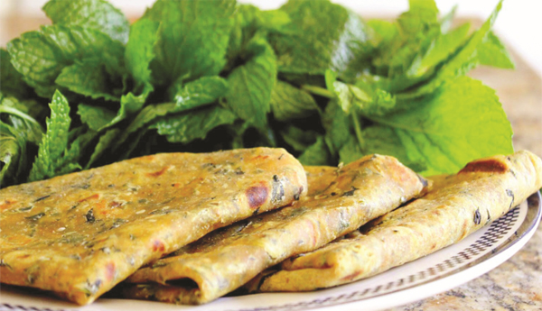 కావాల్సిన పదార్థాలు : మైదా/గోధుమ- నాలుగు కప్పులు, చక్కెర- చిన్న చెంచా, పచ్చి మిరపకాయలు- నాలుగు, పుదీనా ఆకులు- రెండు కప్పులు, నెయ్యి- పెద్ద చెంచా, ఉప్పు- తగినంత, నువ్వుల నూనె- వంద మిల్లీ గ్రాములు.