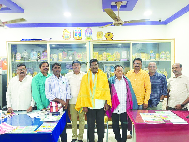 ప్రజాశక్తి - నల్లజర్ల 2024 జనవరి 5, 6, 7 తేదీల్లో రాజమహేంద్రవరం నగరంలో జరుగుతున్న ప్రపంచ తెలుగు మహాసభను జయప్రదం చేయాలని మహాసభల కో-ఆర్డినేటర్ గజల్ శ్రీనివాస్ అన్నయ్య శ్రీరామ్ పిలుపునిచ్చారు. స్థానిక శ్రీ సంఘమిత్ర విద్యాలయంలో సోమవారం గోపాలపురం జోన్ ప్రయివేట్ స్కూల్స్ అసోసియేషన్ కరస్పాండెంట్స్తో ప్రత్యేక సమావేశం జరిగింది. స్కూల్ డైరెక్టర్ అంబటి శ్రీనివాసరావు అధ్యక్షతన జరిగిన ఈ సమావేశంలో ఆయన మాట్లాడుతూ జనవరి 5, 6, 7 తేదీల్లో జరిగే ప్రపంచ తెలుగు మహాసభలకు ప్రతిస్కూల్ కరస్పాండెంట్తోపాటు, ప్రతిభ గల విద్యార్థులు పాల్గొనేలా దృష్టి సారించాలని కోరారు. ఈ సమావేశంలో తూర్పుగోదావరి జిల్లా కార్యదర్శి పెనకటి శివాజీ, కార్యదర్శి ఆతుకూరి సుధీర్ కుమార్, ట్రెజరర్ జి. ఏడుకొండలు, తదితరులు పాల్గొన్నారు.